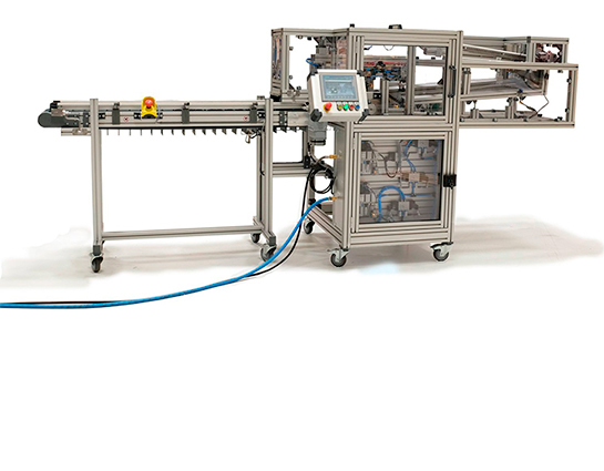 To change over to a new batch, all that is required is to replace the guide brushes on the front of the cleaning station with little effort. The side brushes hold the workpiece in position so that the vacuum gripper can grab it and discharge it on a cycle belt with welded-on bars. The webs prevent contact between the workpieces and thus damage. The flexibility of the system is almost limitless. It can also be equipped with rollers so that it can be positioned as desired, or it can be separated from the infeed and outfeed belts, thus making the operation more or less automated.