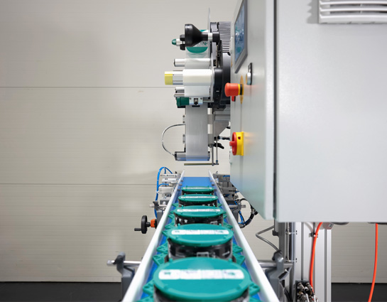 The customer therefore commissioned NOVEXX Solutions from Eching in Bavaria with an automated labelling system to apply the sticker to the plaster cap of the base body. The company specialises in marking and labelling solutions and offers numerous products in this field. The XLS 206 labelling system proved to be the ideal solution for the requirement for a complete solution.