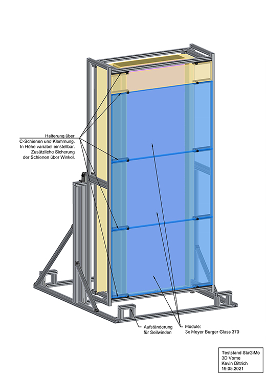 As part of the StaGiMo research project, the Department of Energy and Information at HTW Berlin built a test station to investigate the optimum rear ventilation distance for PV modules - and benefited from the flexibility of the MiniTec modular profile system.