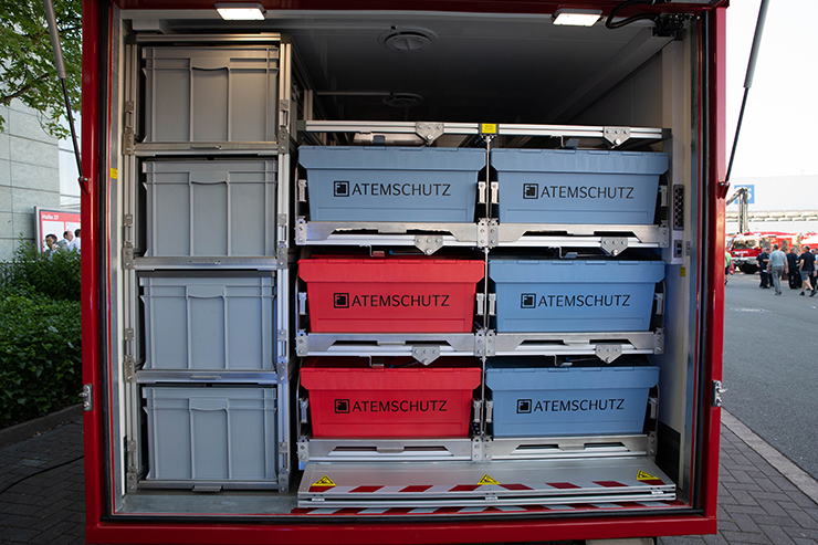 In order to make the transportation and handling of breathing apparatus more hygienic, the Hamburg fire department commissioned the specialists from Meindl with new roll-off containers. Their special design based on the MiniTec modular profile system provides important advantages.