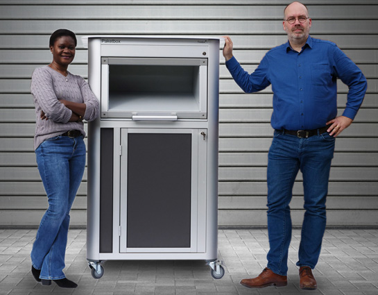Depending on the configuration, a light can be switched on or a text message can be sent to a cell phone. The frame structure of the parcel box is made of aluminum. This makes the parcel box particularly durable and maintenance-free, so rust is not an issue. The walls are made of HPL panels, which are known for their impact, scratch and abrasion resistance. The components come from the MiniTec modular system.