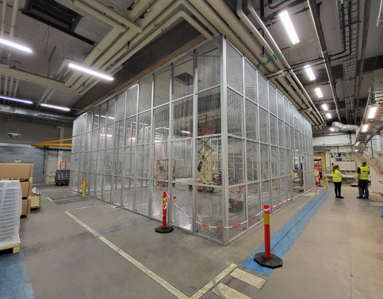 While steel was often used as the basis for construction in previous projects, this time aluminum profiles from MiniTec were used. There were good reasons for this, according to Managing Director Daniel Kurz: "On the one hand, aluminum is lighter than steel. Above all, however, the MiniTec modular system offers significantly greater flexibility because the designs can be changed or extended much more easily." Accordingly, Managing Director Kurz commissioned a protective housing with enormous dimensions from MiniTec. The length and width are both 13 m, and the height is also considerable at 5 m. A filigree wire mesh was used for the shielding, both on the sides and at the top. The floor was constructed in several layers, with a 5 mm thick insulating mat surface and checker plate on top. An operator compartment was also provided within the enclosure, as well as a separate deep earthing system.