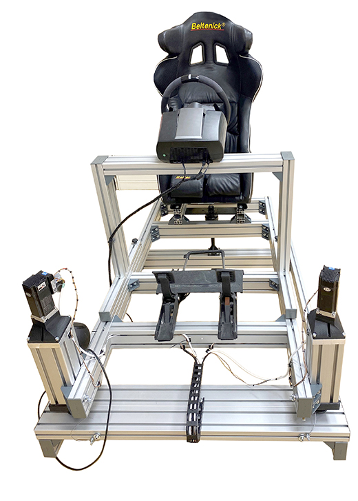 The Simrace X2 team with its racing simulator.