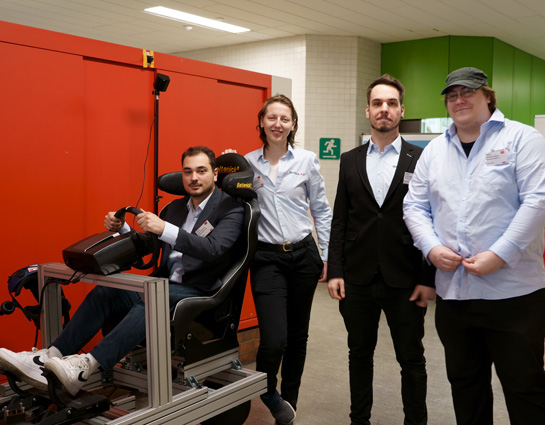 The idea for this project arose from the desire to combine driving pleasure and environmental awareness. The team wanted to develop a system that would allow users to enjoy a racing experience without exhaust fumes and noise. At the same time, the simulator had to be designed in such a way that it was easy to operate and easy to transport.