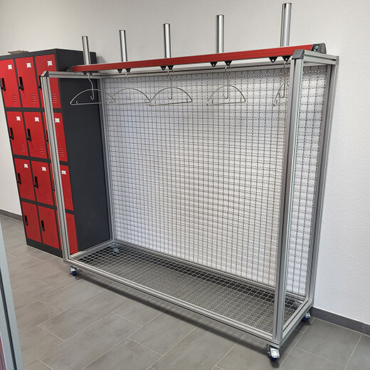 The Niederstetten volunteer fire department has been benefiting from the MiniTec profile construction kit for many years. The team around commander Oliver Käss designs and builds all kinds of constructions on their own, going far beyond the portfolio of the MiniTec fire department catalog. The most recent example is the special roller wardrobes that were built for the unit's crew rooms in the Rinderfeld district.