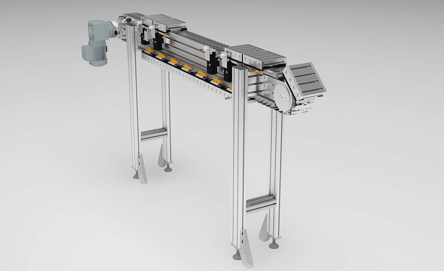 The UMS pallet circulation system is based on the high-quality standard components of the MiniTec modular system. The circulation system is therefore compatible with all components of our modular system. Additions such as test stations, assembly and unloading stations can be seamlessly integrated. We and our experienced will be pleased to help your to plan and implement your conveyor systems, as well as their adaptation to your special tasks.