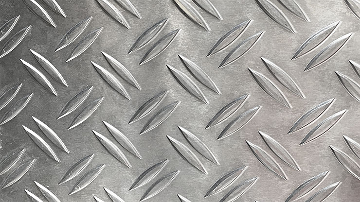 Duet aluminium chequer plates (2 bars next to each other) with raw, bright rolled finish. The diagonal ribbed structure (named chequers or diamonds) improves slip-resistance. The material is therefore in demand for use in vehicle fit out for floorings, shelving, ramps, etc.